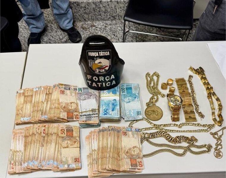 PMMT Policiais militares da Força Tática do 2º Comando Regional apreenderam, nesta terça-feira (23.9), 10 semijoias, mais de R$ 50 mil em espécie e 57...