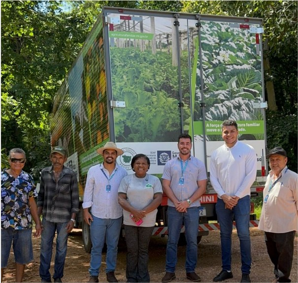 Servidores da Seaf e Empaer, ao lado de moradores e da presidente da Associação de Agricultura Familiar da Mineira, no Aguaçu, Alessandra Carneiro de Souza –...