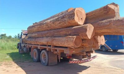 Foto: PMMT/Reprodução Policiais militares da 4ª Companhia Independente de Polícia Militar de Proteção Ambiental apreenderam mais de 103 metros cúbicos de madeira em toras transportadas ilegalmente,...